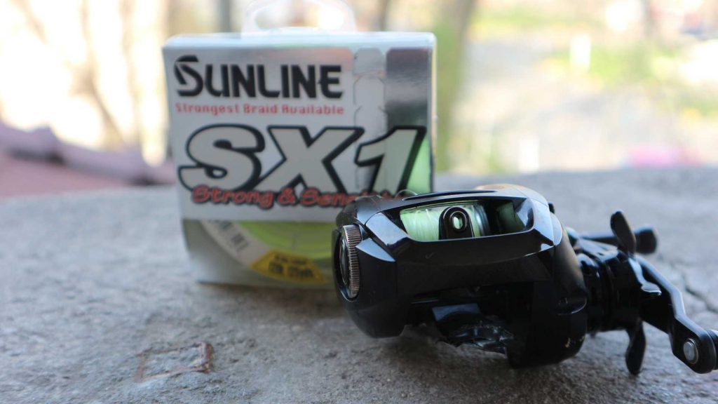 Când pescuiam cu o lansetă rigidă precum Fantasista Regista, foloseam întotdeauna fluorcarbon cu rezistențe între 12 și 14 lbs. (0,28 – 0,31 mm diametru). Cu lanseta EDGE de swimbait, mult mai flexibilă pe vârf, pot folosi liniștit fire textile. Pe Megabassul Lariat am Sunline SX1 de 12 lbs. cu lider din fluorcarbon de 10 lbs.