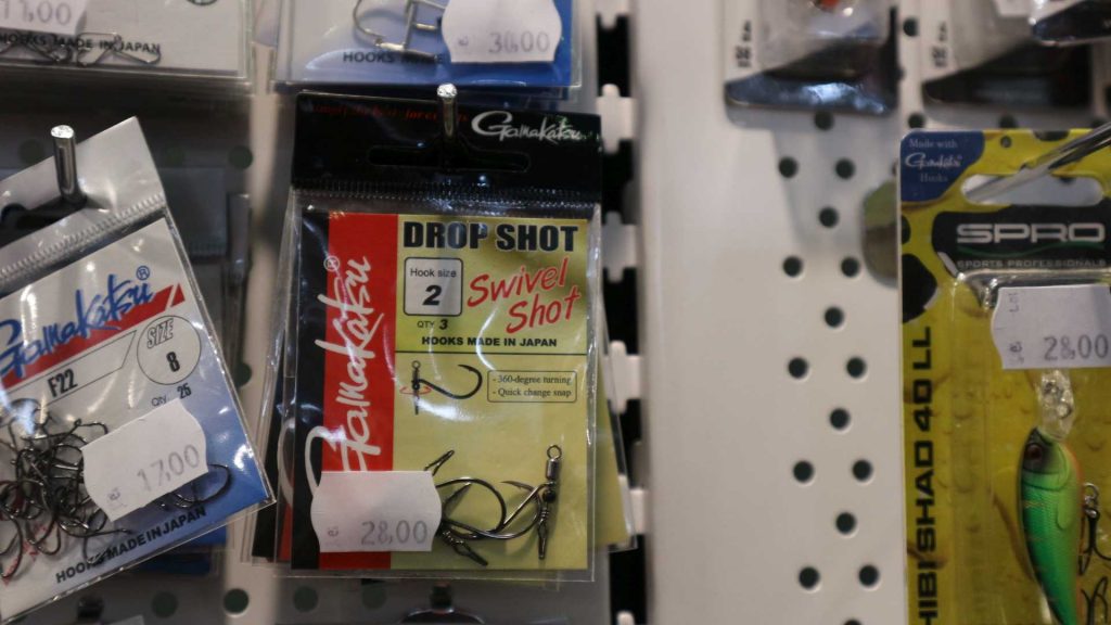 Ce mi-a mai plăcut au fost cârligele ”rotative” sau anti-twist de la Gamakatsu, create special pentru monturile drop shot. Atunci când pescuiesc cu fluorcarbon la drop shot, cârligul legat perpendicular pe fir răsucește rău primii 4 – 5 metri ai firului, și asta dăunează prezentării. Cred că în standul celor de la Pescamania am găsit aceste cârlige cu vârtej: